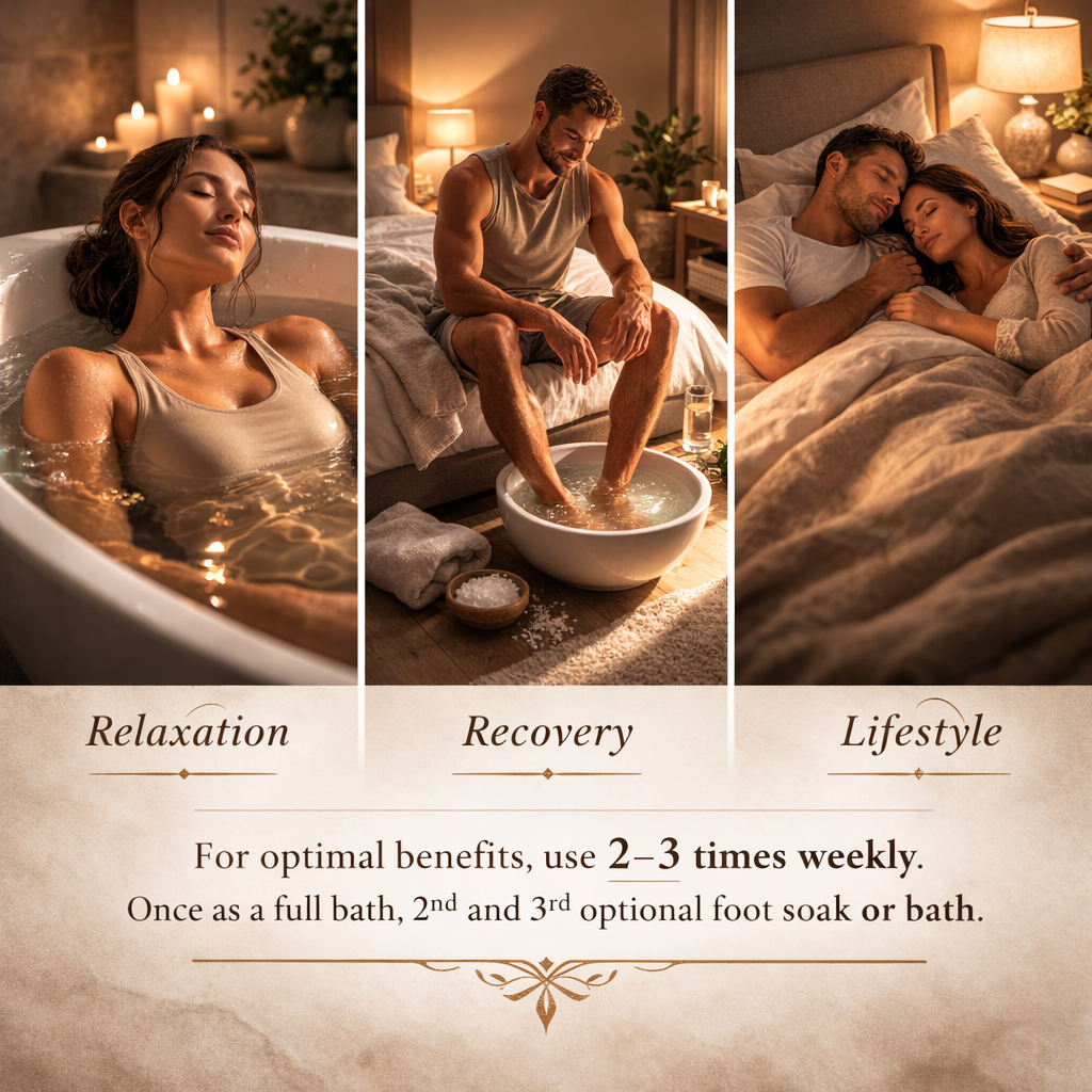 A simple 2-3 step weekly, ritual using spa-grade magnesium and botanical sachets to help calm the body, ease physical tension, and support deeper rest.